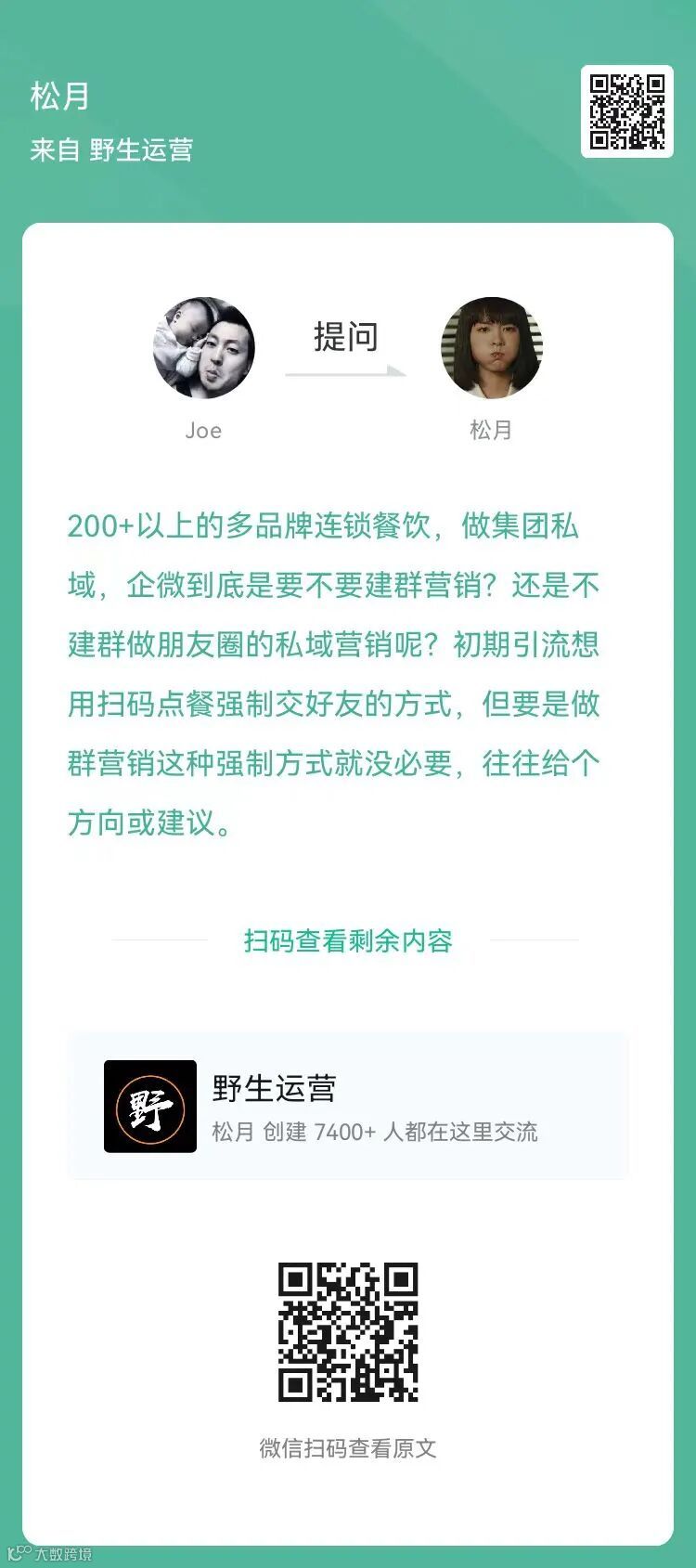 4、提问:品牌连锁餐饮,做集团私域,企微到底是要不要建群营销?(扫码查看全文)