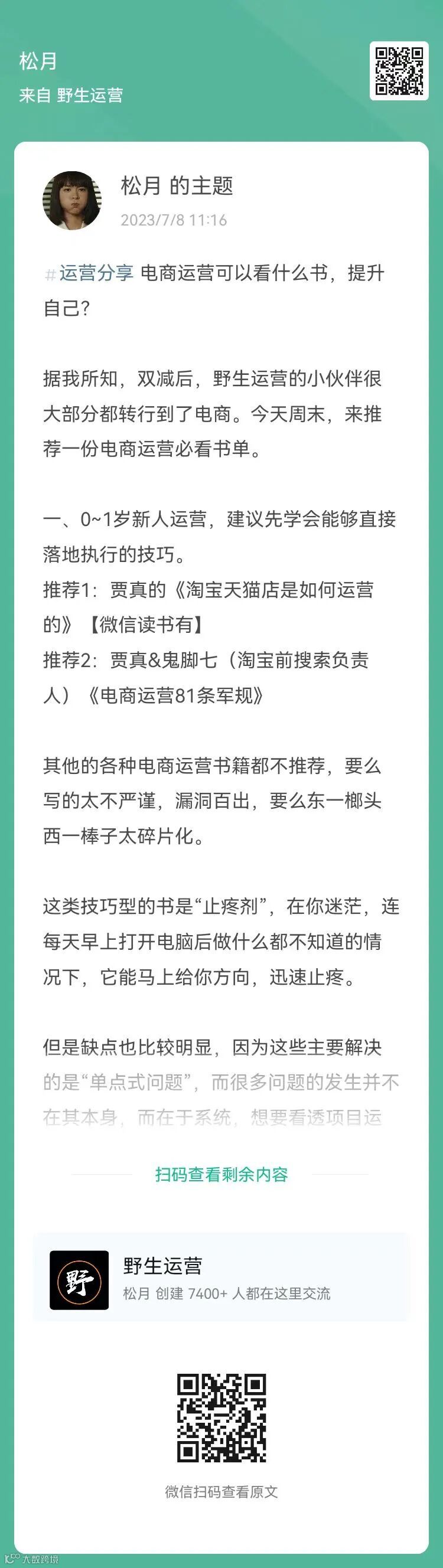 野生运营知识星球,每周会产生大量精华内容,每周一为你整理《野生运营:一周星球内参》,让你不错过任何一条有价值的信息。话不多说,这就开始!