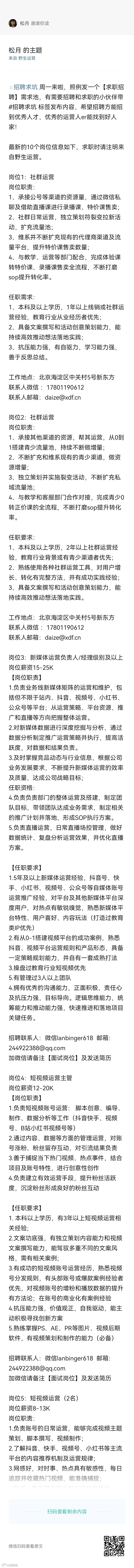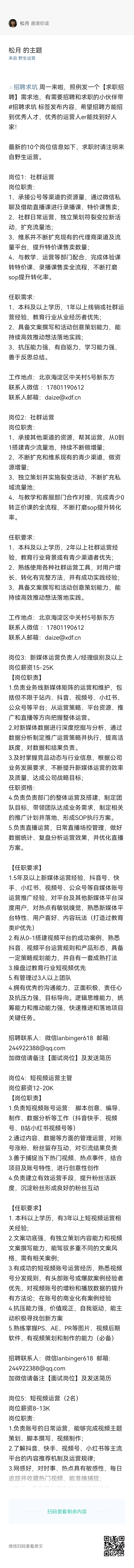 上周更新了10个岗位信息如下,求职时请注明来自野生运营,扫码申请岗位👇