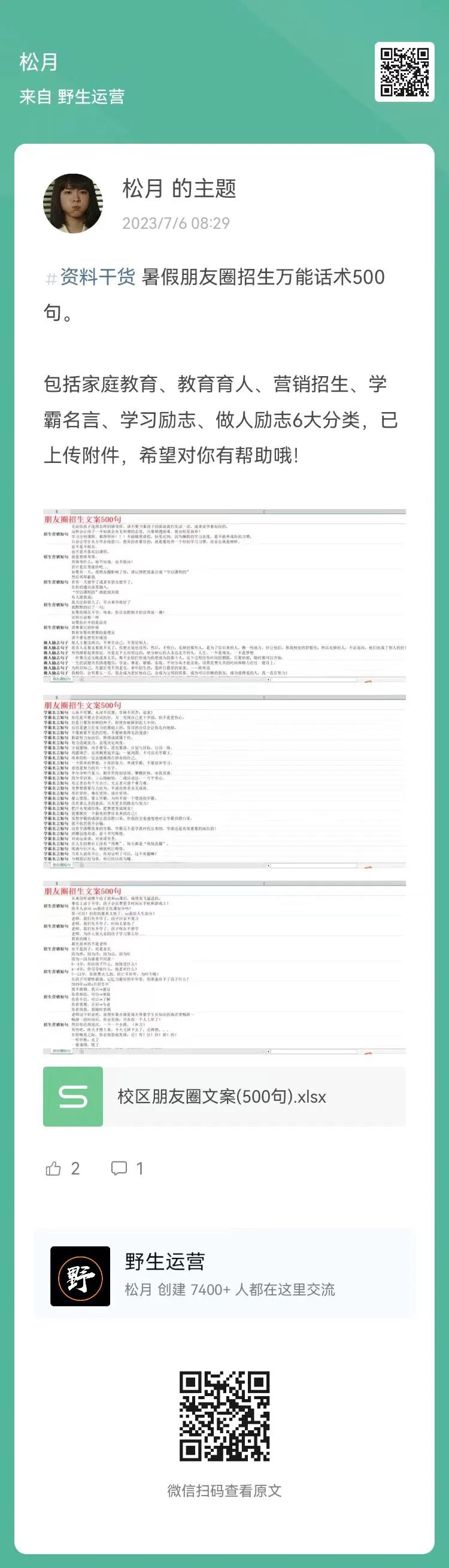 12、松月:暑假朋友圈招生万能话术500句(扫码查看全文)