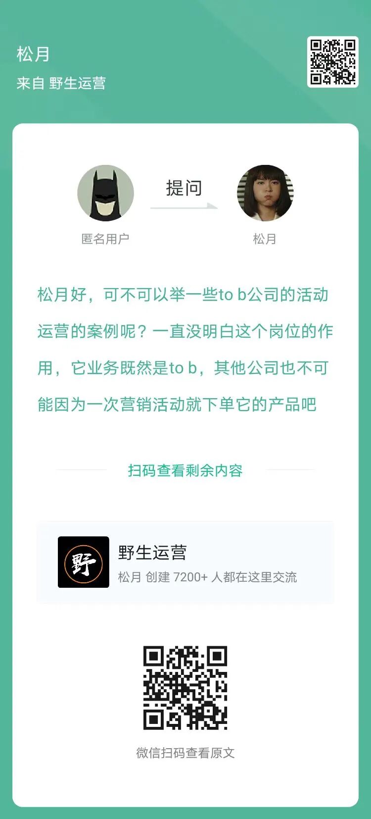 2、提问:可不可以举一些to b公司的活动运营的案例呢?一直没明白这个岗位的作用?(扫码查看全文)