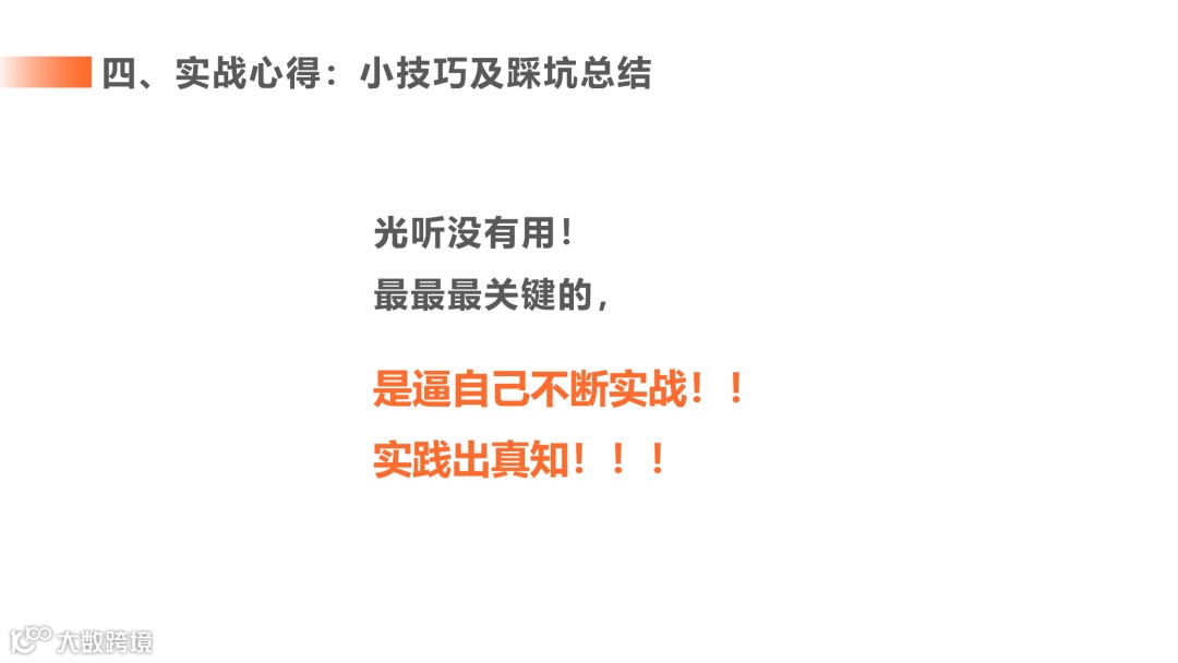 最后我的实战心得:是光听一点用没有,最最最关键的,是逼自己不断实战!