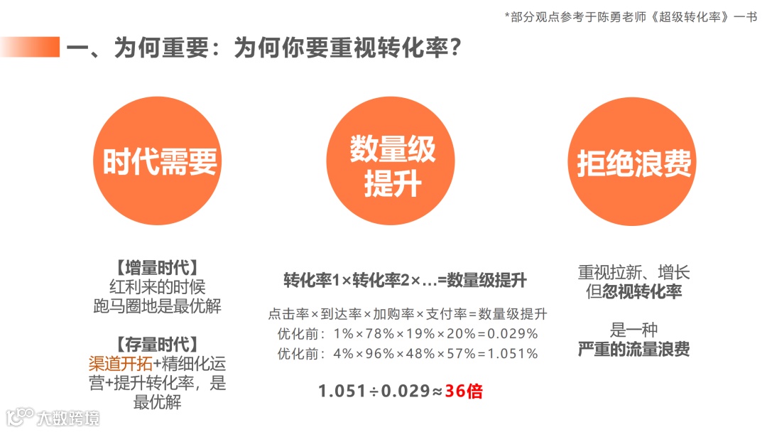 第一章节,会介绍要重视转化率的 3 重原因。虽说大家都知道转化率很重要,但事实上重视的程度还不够系统,也不够细节。