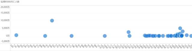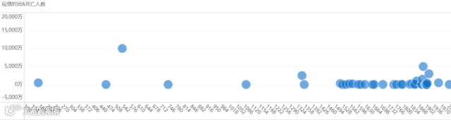 在自助数据集内创建组件,将时间作为维度、死亡人数作为指标,即可以得到以此作为横纵坐标的散点图。