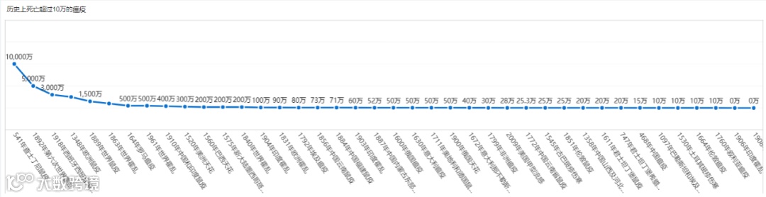 所以我再去网上搜索中国历史上的瘟疫,果然,小编找到了有学者统计的中国史书上有记载的瘟疫。其中,很多记载是”死亡过半“、”死亡六七“,偶尔也能看到数万数十万的记载。