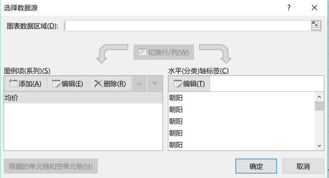 3、“选择数据源”中,水平分类轴加上“区域”,如下