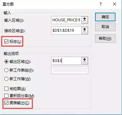 输出区域选择G3,勾选图表输出,然后单击“确定”按钮。