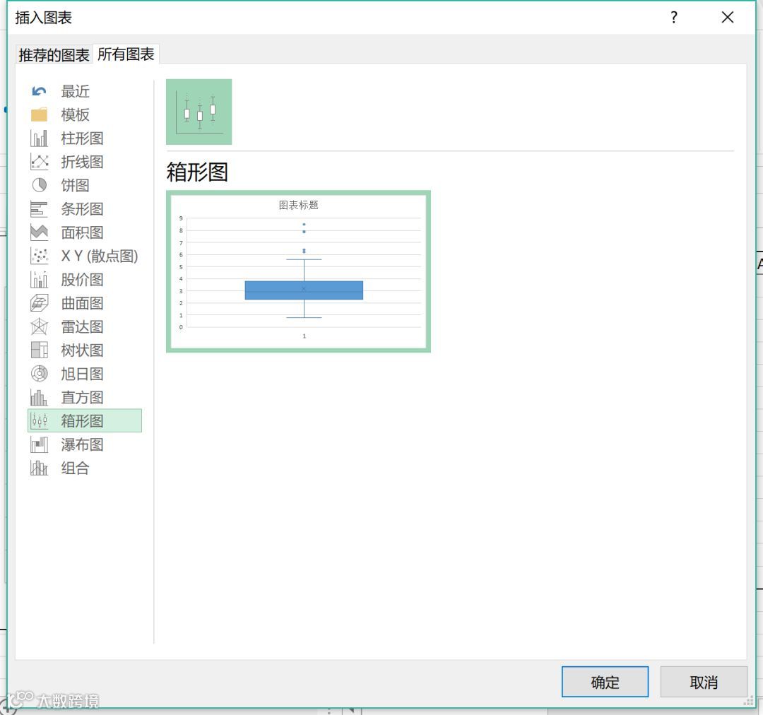 Excel 2016 可以直接制作箱型图。Excel的箱型图定位6个数据:最大值、最小值、中位数、上四分位数、下四分位数、平均值,还有异常值。