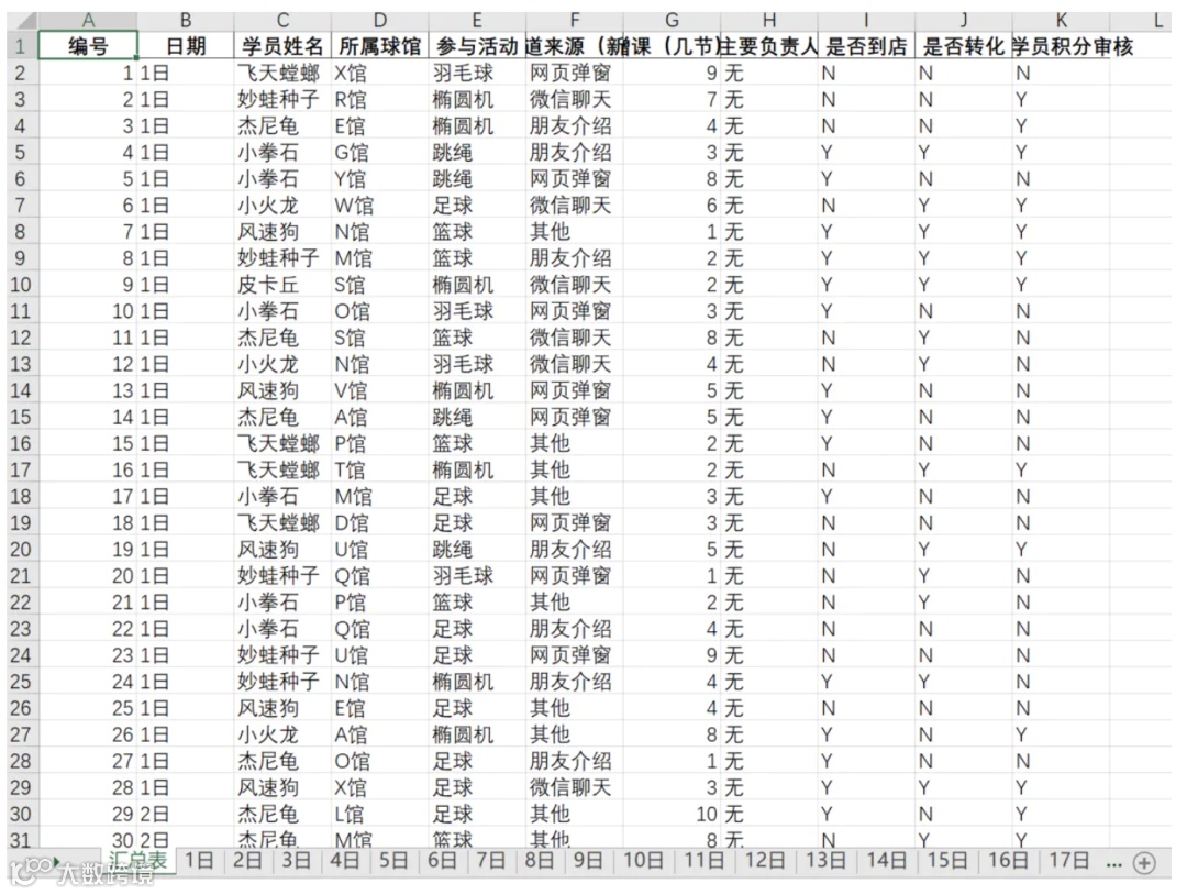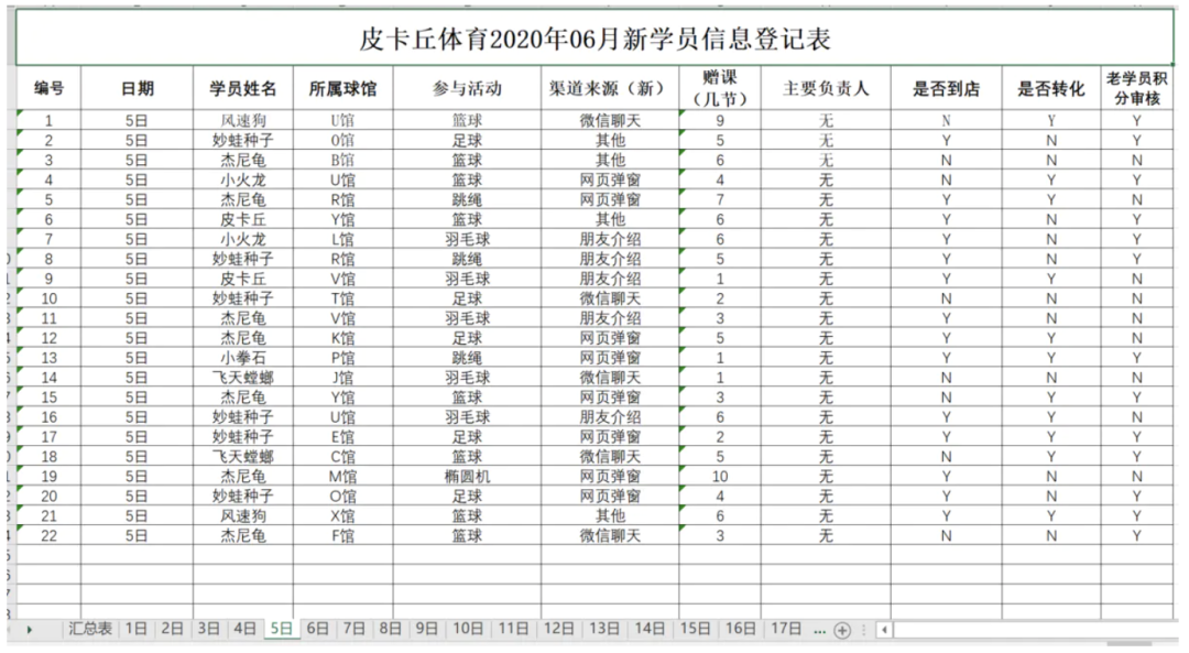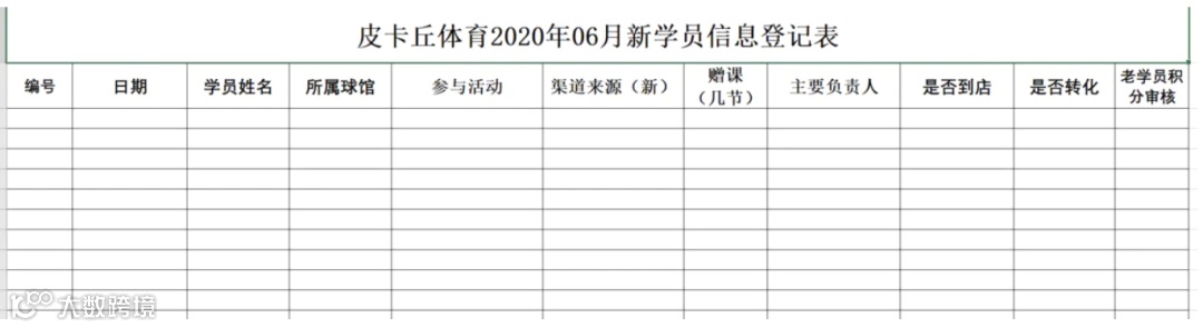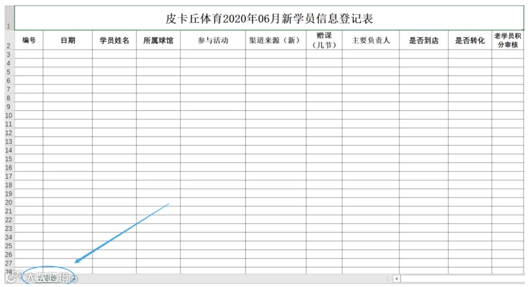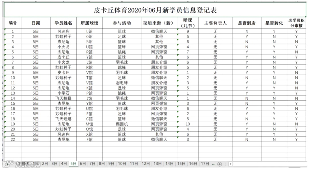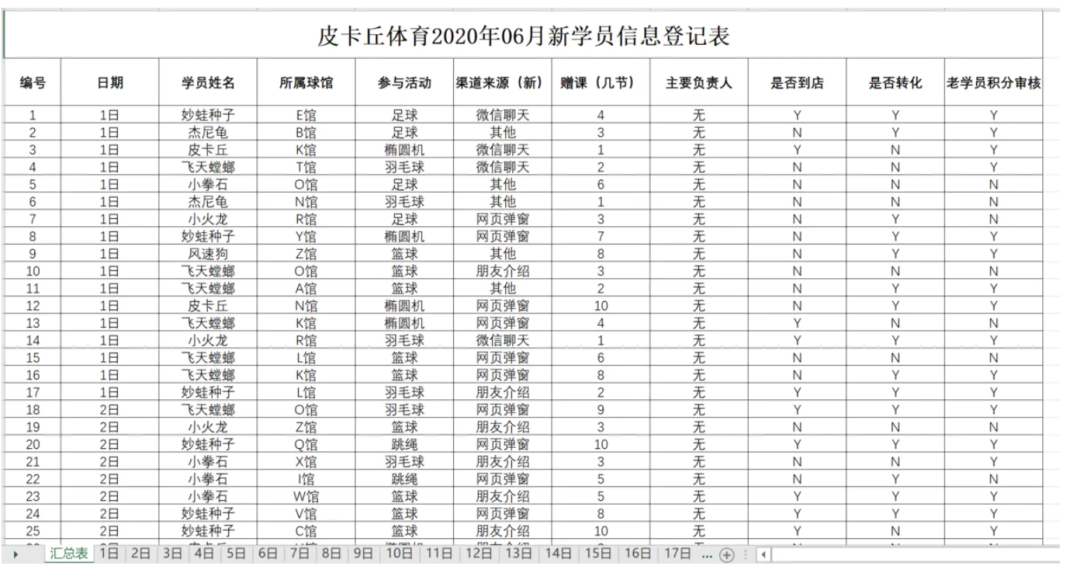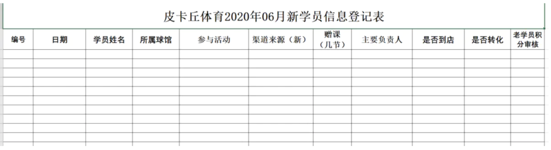sheet['A1'] = '皮卡丘体育2020年06月新学员信息登记表'