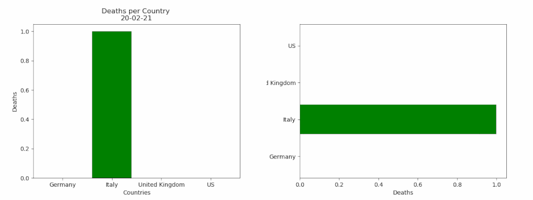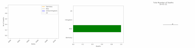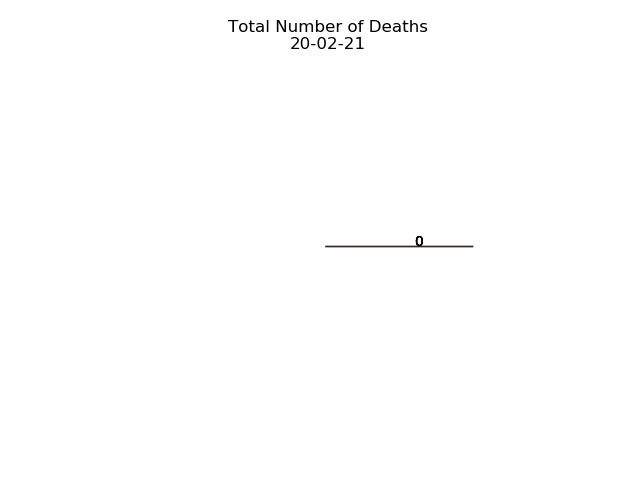 plot.set_title('Total Number of Deaths\n' + str(df1.index[min( i, len(df1.index)-1 )].strftime('%y-%m-%d')), fontsize=12)import matplotlib.animation as ani