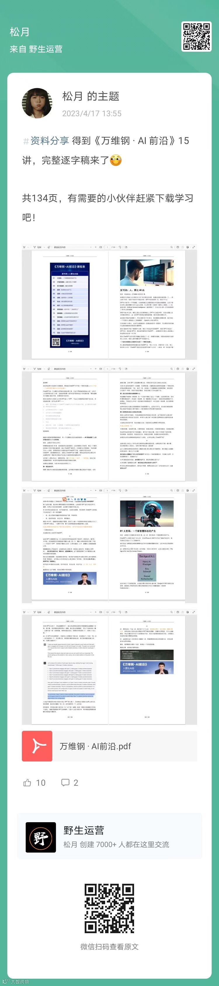 2、松月:得到《万维钢 · AI 前沿》15讲完整逐字稿(扫码查看全文)