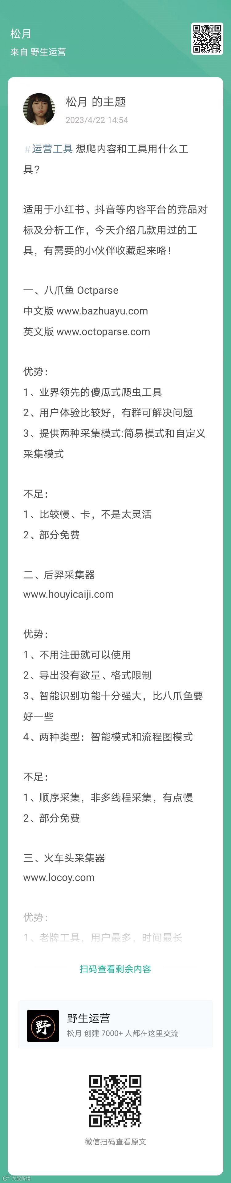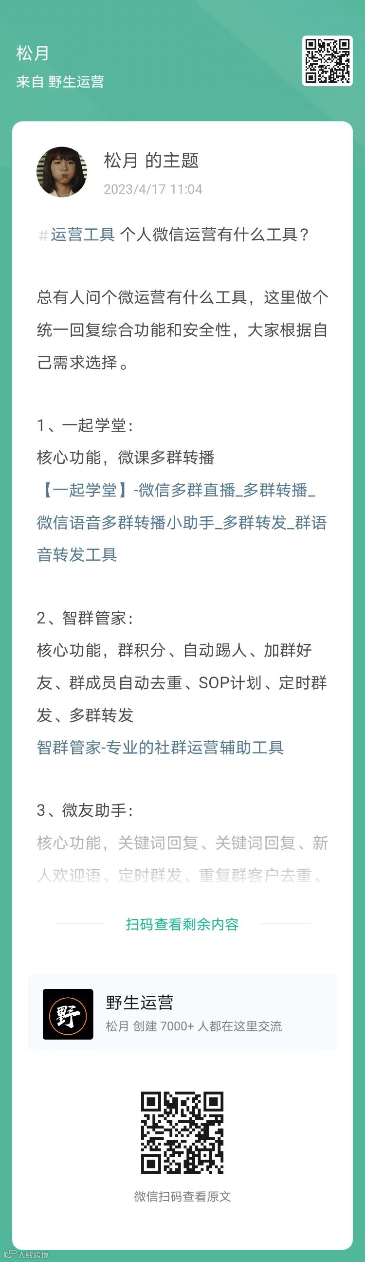 1、松月:个人微信运营有什么工具(扫码查看全文)
