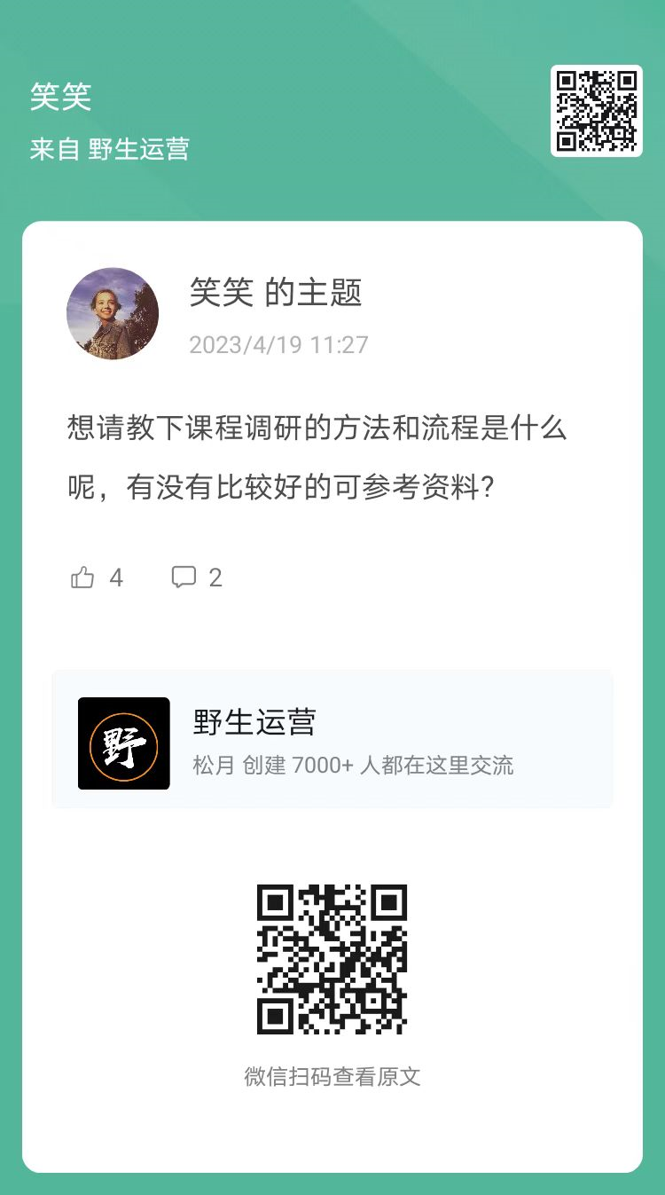 5、提问:课程调研的方法和流程是什么呢,有没有比较好的可参考资料?(扫码查看全文)