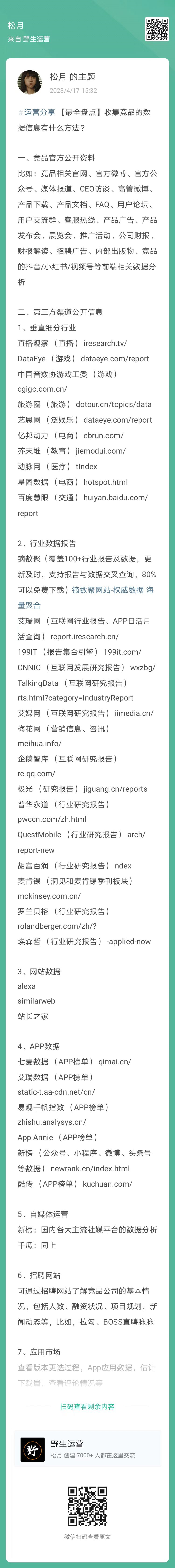 3、松月:【最全盘点】收集竞品的数据信息有什么方法(扫码查看全文)