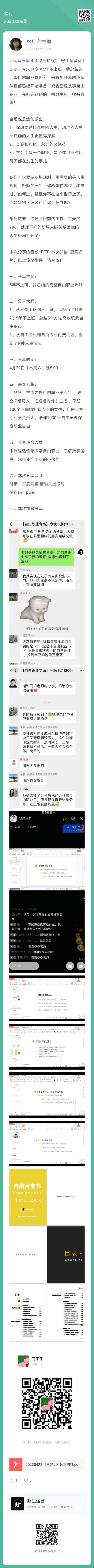 21、野生运营×门冬冬,快闪分享《5年不上班,我总结的完整自由职业攻略》(扫码查看全文)
