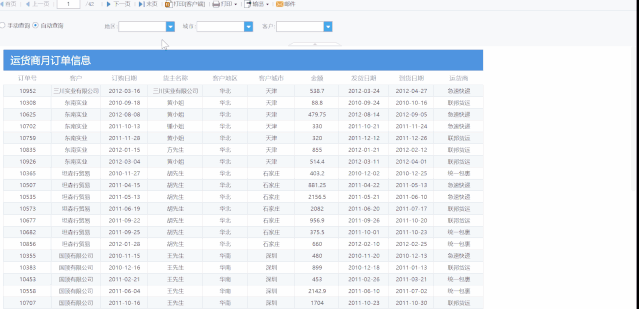 他们所需要的报表更多的查询和取数。可以任意选择自己权限范围的不同维度(不同产品,不同订单)来看结果。所以在制作报表时需要埋设查询维度,在FineReport就是参数设置。学会这一步,能把N张报表汇总成一张模板。