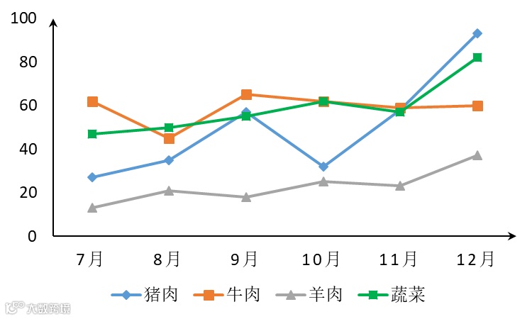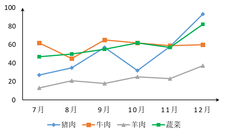 数据显示,三季度以来,牛肉、猪肉、羊肉等肉类及萝卜、黄瓜、西红柿等蔬菜类商品相关受理量较高,猪肉、羊肉、蔬菜相关案件受理量有所上升,牛肉类案件受理量平稳。