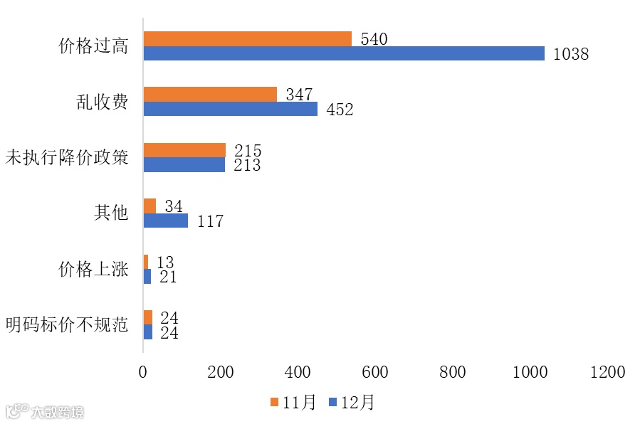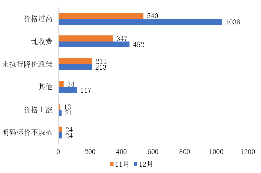 本月,消费者反映的具体问题主要集中在价格偏高、明码标价不规范、低标高结等。