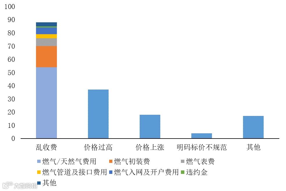 供气方面,本月平台共受理相关案件725件,同比下降35.6%,环比下降36.3%。其中,燃气费、初装费、配套费等费种乱收费是民众反映最为集中的问题,共计88件;涉及价格过高、价格上涨、明码标价不规范等问题案件分别为37、18和4件。