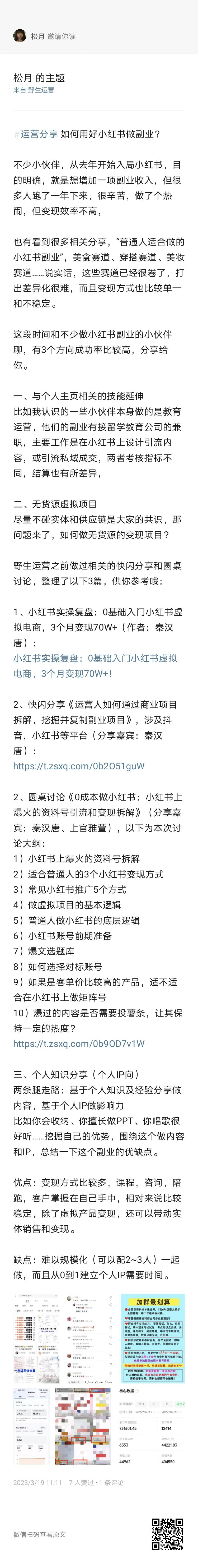 延伸阅读:对于普通人来说,做小红书不是目的,变现才是。这段时间和不少做小红书副业的小伙伴聊,有3个方向成功率比较高,分享给你,扫码阅读全文👇👇👇