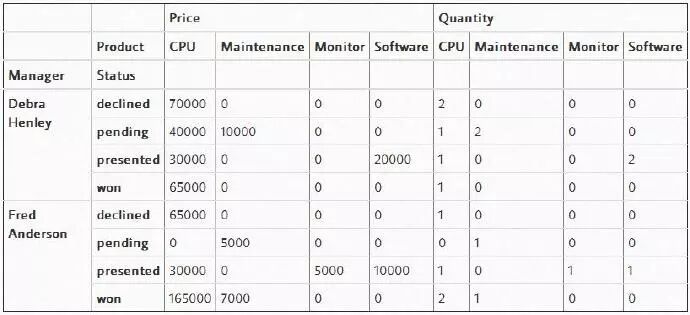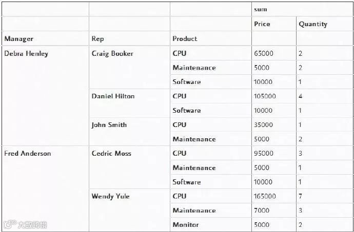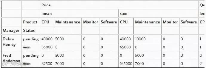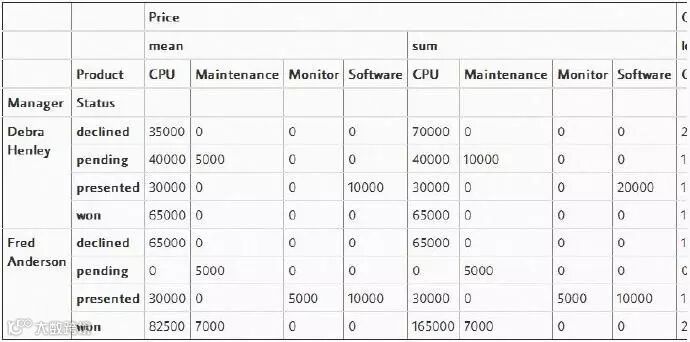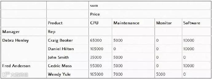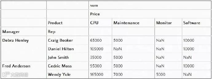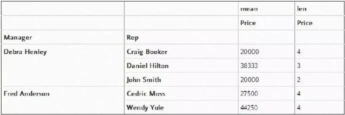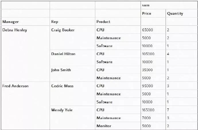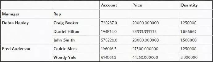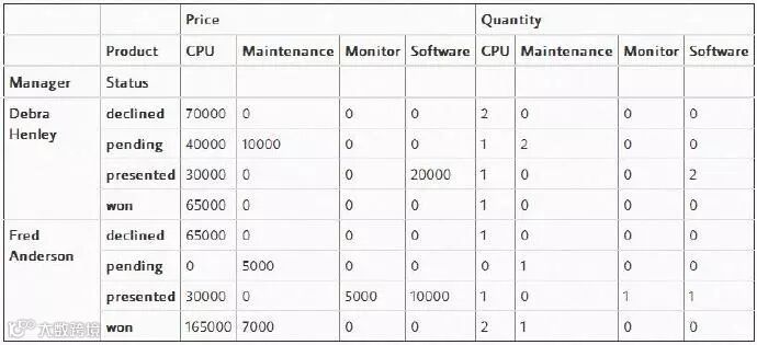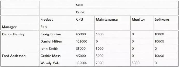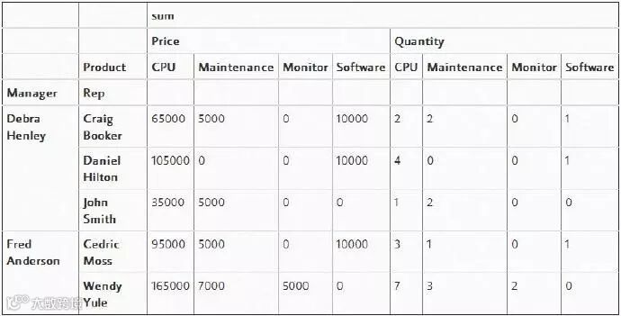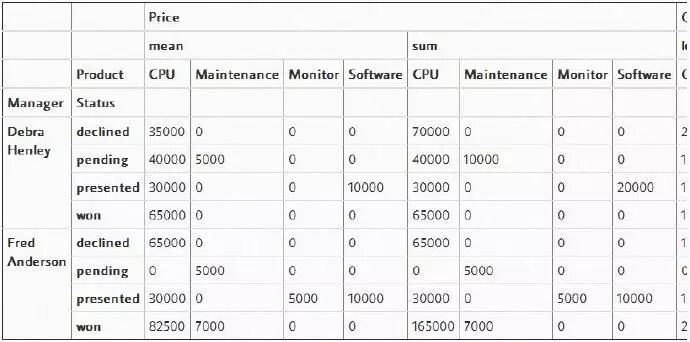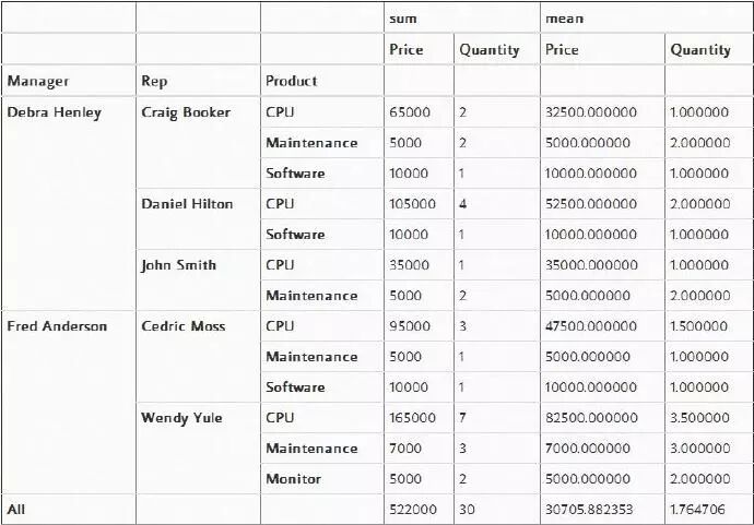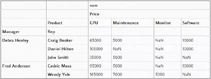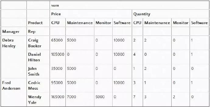 这样很有趣但并不是特别有用。我们可能想做的是通过将“Manager”和“Rep”设置为索引来查看结果。