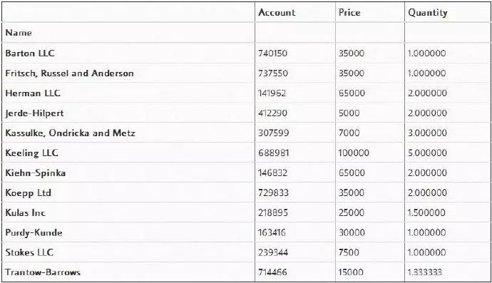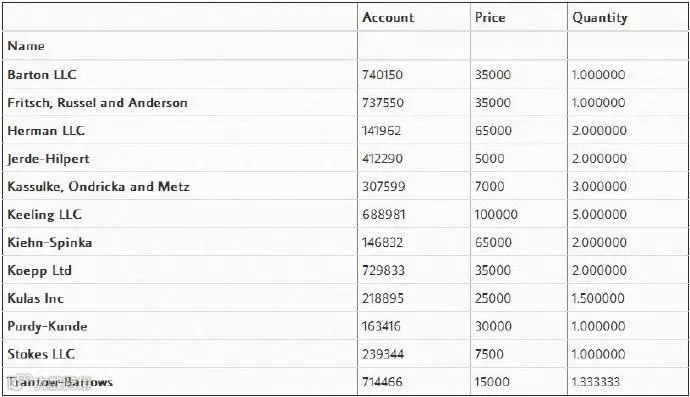 为此,“Account”和“Quantity”列对于我们来说并没什么用。所以,通过利用“values”域显式地定义我们关心的列,就可以实现移除那些不关心的列。