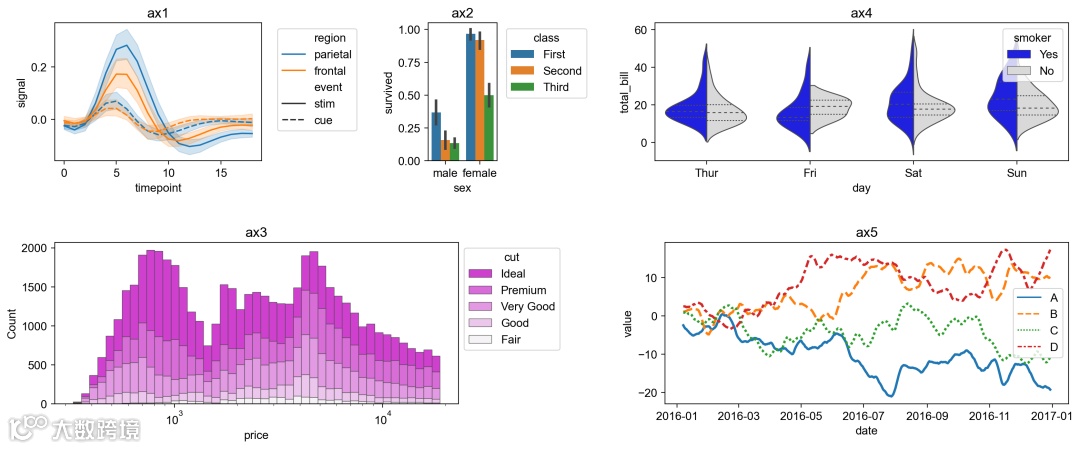 Patchworklib 提供了该问题的解决方案。通过使用 patchworklib,任何类型的seaborn 和plotnine 图都可以作为matplotlib 子图进行处理。安装