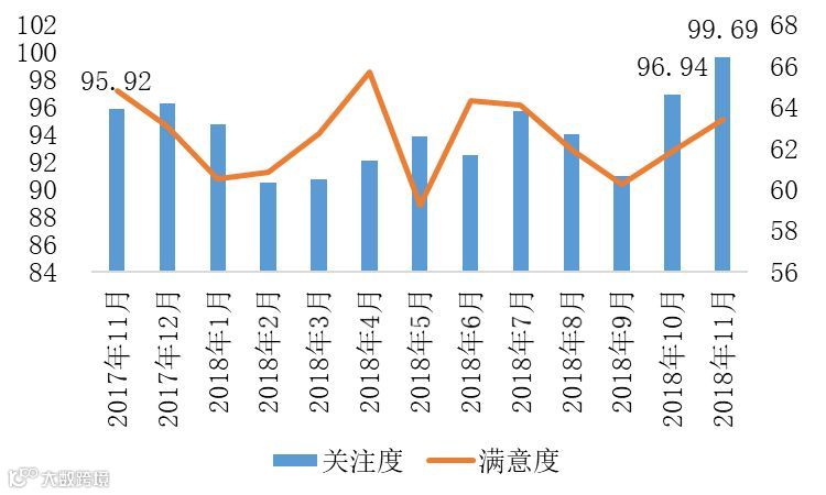 互联网舆情数据分析结果显示,2017年11月以来,受全国多地区水电气暖等领域改革系列举措实施出台影响,舆论对供暖、供电、供气等资源价格的关注及情绪走势呈波动变化。2018年11月全国多地区迎来供暖期,舆论对供暖、供电、供气等资源价格的关注度达到99.69,环比增长2.84%,较2017年同期增长3.93%,舆论满意度环比增长2.51%,同比有所下降。