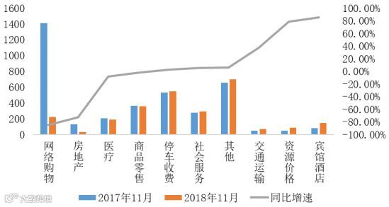 图3:11月各行业受理量变化情况