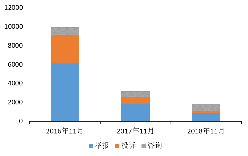 全国12358价格监管平台数据显示,11月,网购类案件受理量呈现逐年下降的趋势,其中举报、投诉类案件下降趋势明显,咨询类案件受理量变化不大。2018年11月,平台共受理网购类案件1789件,其中价格举报911件,同比下降49.3%,环比上升89.4%;价格投诉159件,同比下降79.7%,环比上升14.4%;价格咨询719件,同比上升24.2%,环比上升56.0%。逐日来看,11月11日至20日为消费者集中维权时段,相关案件受理量出现波动上涨,21日起受理量逐渐回落。