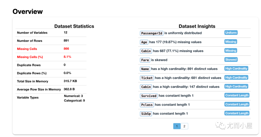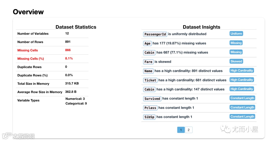 dataprep是一个开源的Python第三方库,有助于数据科学者、数据挖掘/分析师等自动化进行数据探索,能够快速地创建数据分析报告,还能够绘制整体图形、缺失值和相关系数等图形。