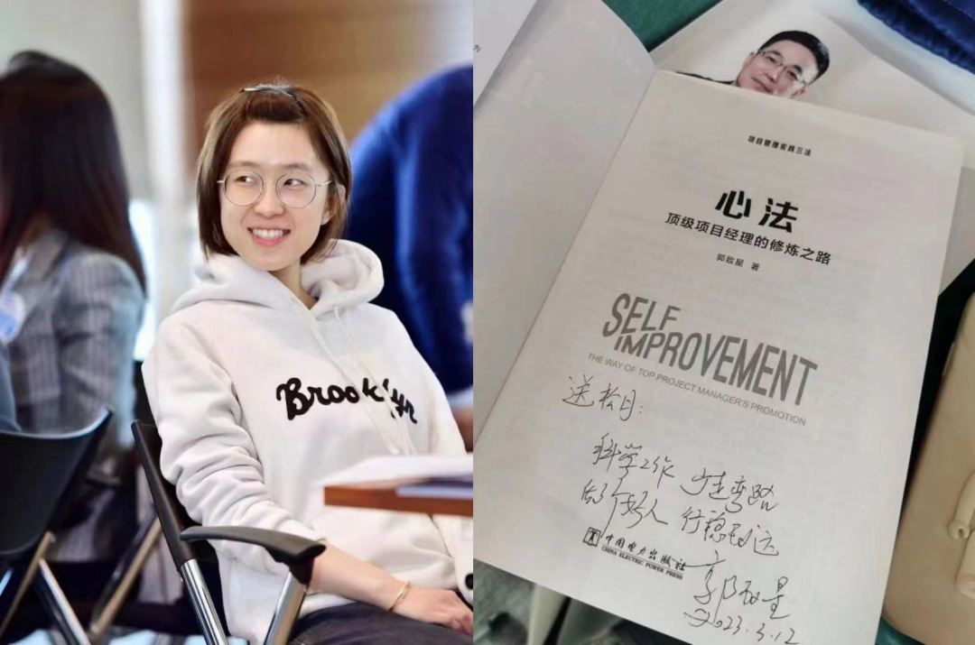 在课堂上除了和用户交流,还能各种蹭课,这个月印象最深的是,《多项目管理》烧脑的2天学习,头发都炸毛了(感谢摄影师赐照)😘 做好多项目管理,不仅要看到事,更要看到人,谢谢郭老师的书籍签名,我会一直做个好人:)