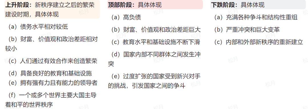 (2)内部秩序和混乱周期(取决于合作程度与财富和权力斗争,后者主要缘于财富和价值观差距);