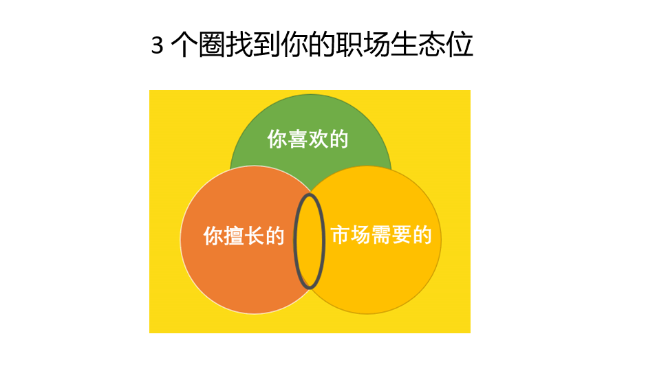 如果大势不能结合个人去看,就等于做运营没有抓手,没有落地的方法。一直以来,我用的都是这个模型,来找个人的优势,如果放在职场中,就是找到你的职场生态位。