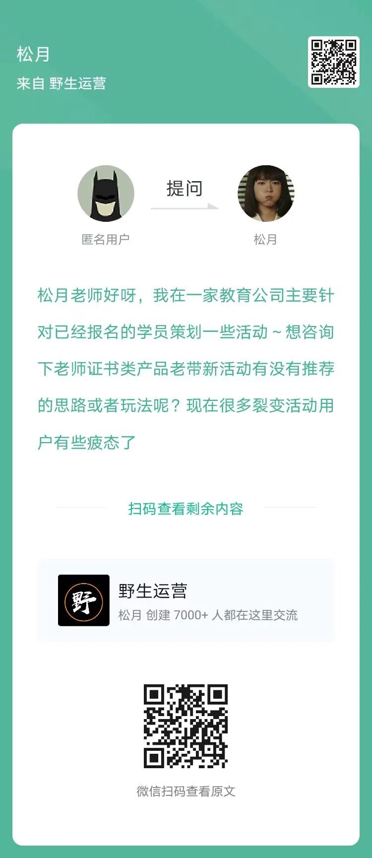 2、提问:证书类产品老带新活动有没有推荐的思路或者玩法呢?(扫码查看全文)
