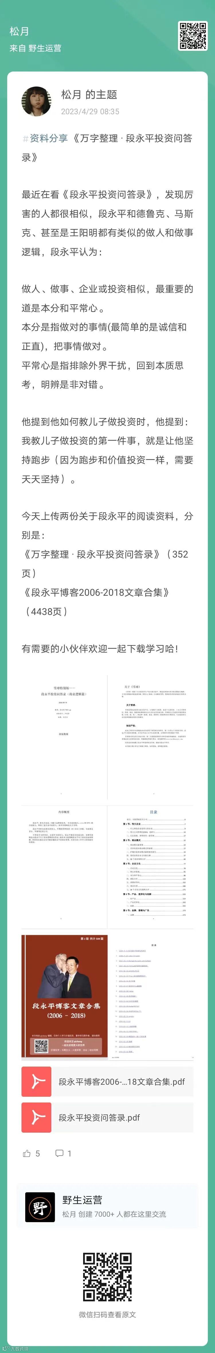 16、松月:《万字整理 · 段永平投资问答录》(扫码查看全文)