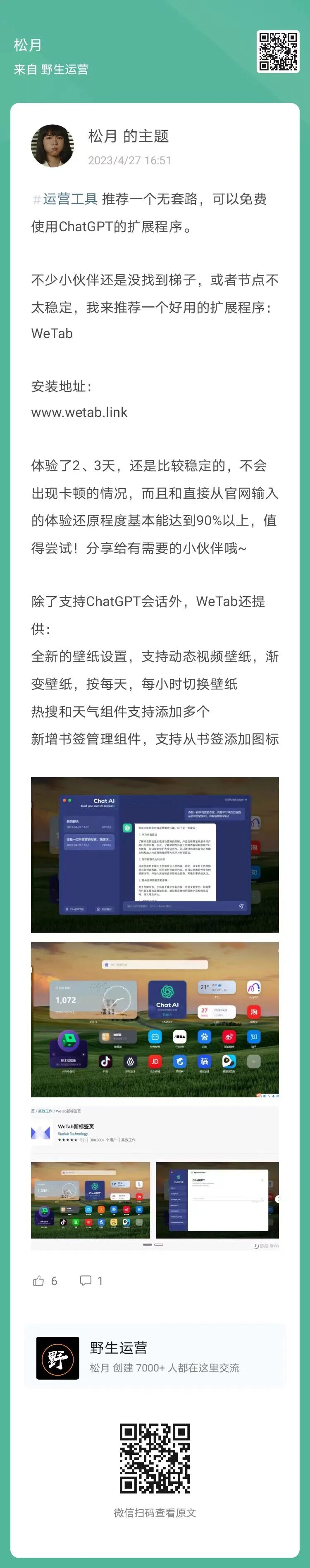 14、松月:推荐一个无套路,可以免费使用ChatGPT的扩展程序(扫码查看全文)