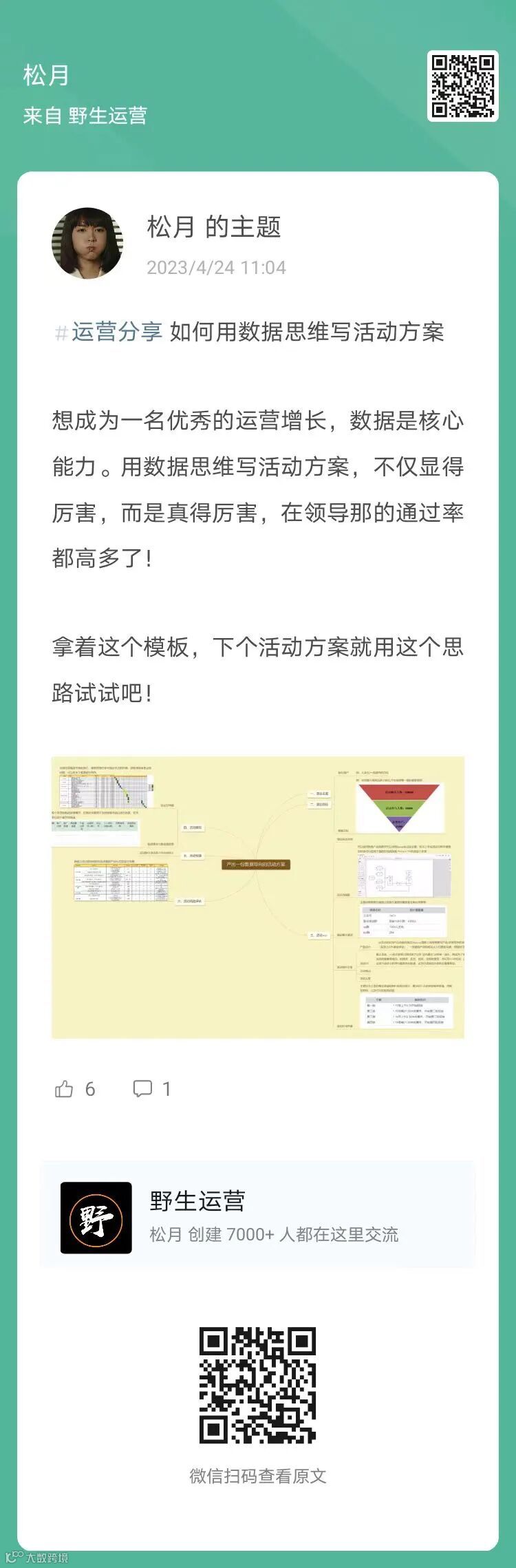 1、松月:如何用数据思维写活动方案(扫码查看全文)