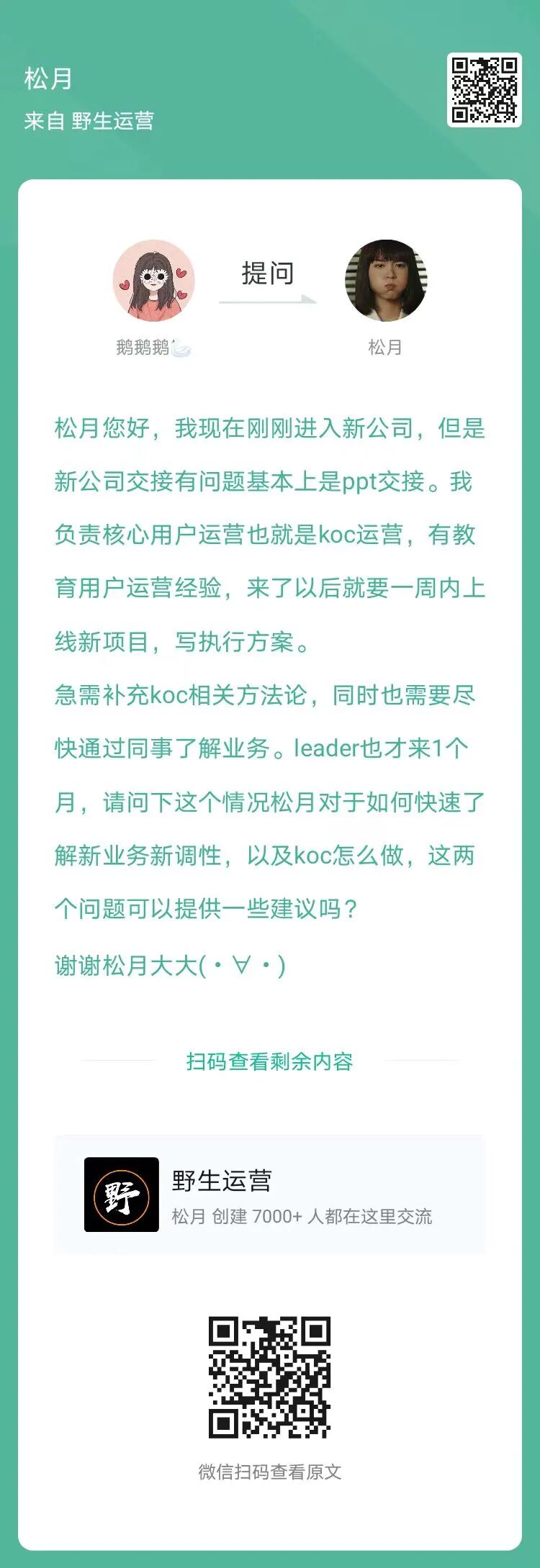 6、提问:如何快速了解新业务新调性,以及koc怎么做,这两个问题可以提供一些建议吗?(扫码查看全文)