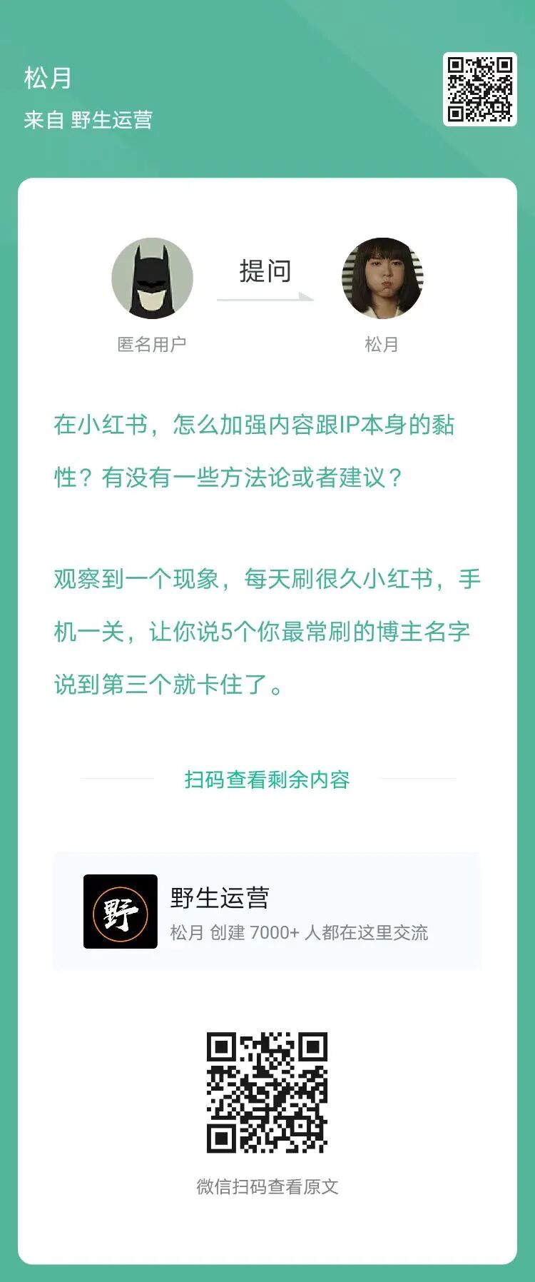 4、提问:在小红书,怎么加强内容跟IP本身的黏性?有没有一些方法论或者建议?(扫码查看全文)