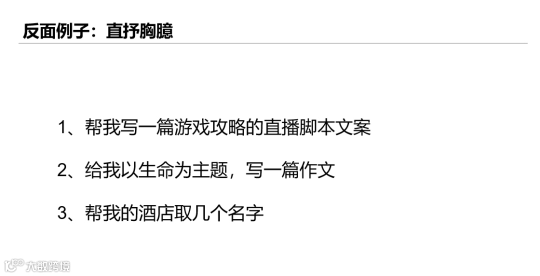 第三个误区是拿来主义,也就是说ChatGPT生产的内容不经思索,不加修改,你拿来就直接用,这是不对的。因为它是基于知识库生成的内容,而且并不一定在那些非常专业的行业里,它进行了预训练,所以ChatGPT生成的内容,你自己是要做审核的,不一定百分百正确,你需要用你的行业经验来校正、调教它,它错了,你就要告诉它哪里错了,正确答案是什么。