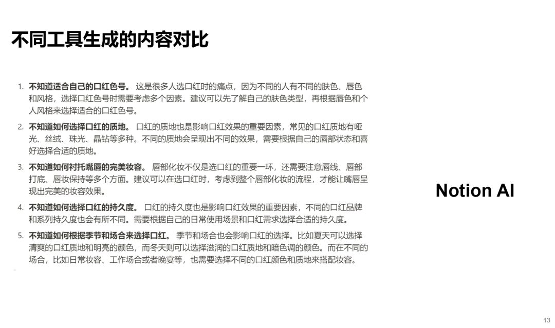 答:不要一步到位,建议先让他给出主题方向、再给到提纲、再根据提纲细化内容。