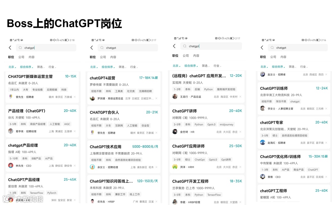 我们可以看一下boss上目前的ChatGPT的招聘岗位: