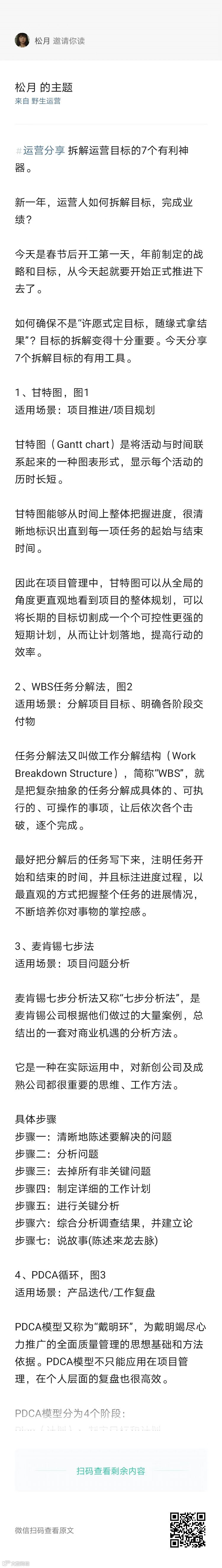 延伸阅读:如何确保不是“许愿式定目标,随缘式拿结果”?目标的拆解变得十分重要,今天分享7个拆解目标的有用工具,扫码阅读原文👇