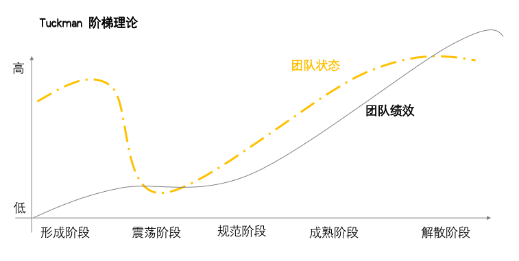 在组织行为学中,有个塔克曼阶梯理论,说的是团队和自然界的生物一样,也会有生命周期。但不同的是,团队在一开始形成后,往往会先经历一个“高开低走”的过程。