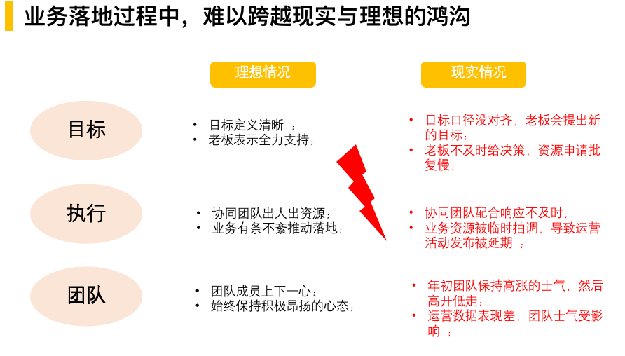 渐渐,在执行过程汇总开始碰到各种问题,然后信心受挫,最终导致业务迟迟无法落地,离目标渐行渐远。