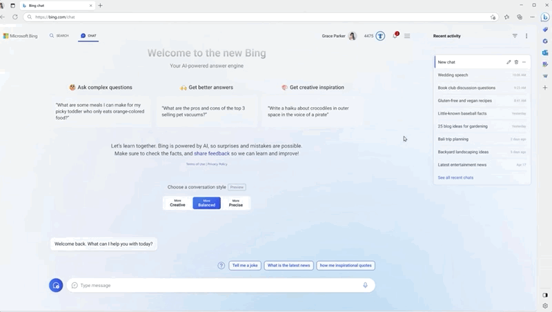 微软表示,目前他们正在探索如何将历史对话内容引入新对话中,让Bing能够更加个性化。