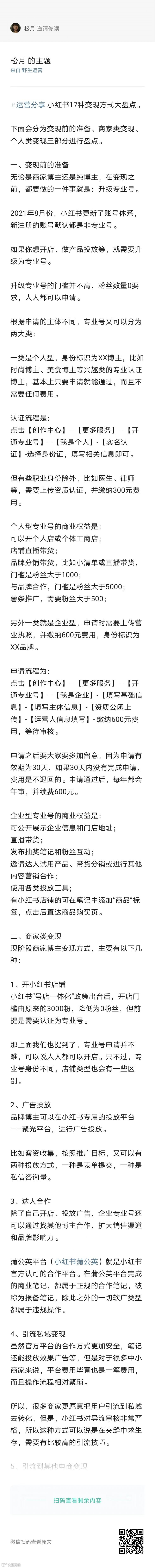 延伸阅读,小红书变现的 17 种方法,会分为变现前的准备、商家类变现、个人类变现进行盘点,扫码阅读全文:👇👇👇