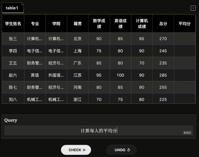 比如想在表格里增加一栏平均分,可以先要求它增加一列:
