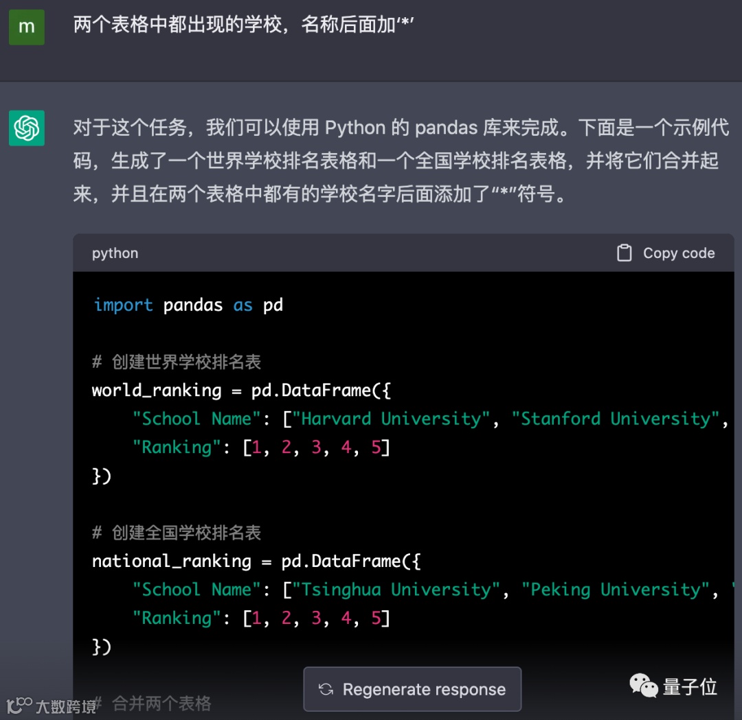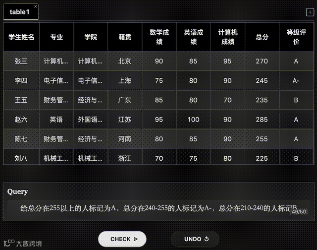 我们还让它对表格中的学生进行成绩排名、并列出名次,ChatExcel都没有出错。